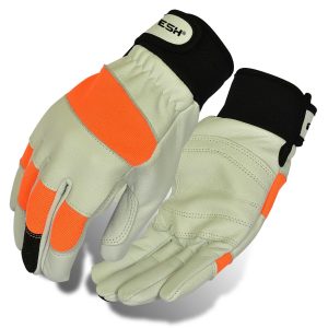 These top-tier gloves are crafted from premium goatskin leather, with a reinforced palm patch for unmatched durability. The advanced chainsaw cut retardant fabric delivers Class Level 2 protection, ideal for high-risk tasks. The spandex back ensures breathability, while the goatskin leather knuckle offers robust protection. Finished with a nylon-over-neoprene cuff and goatskin leather hook and loop strap for a secure, ergonomic fit. Reinforced nail tips, durable goatskin thumb back, and electro-conductive synthetic leather on the middle finger ensure high performance and touchscreen compatibility. These gloves set the standard for those demanding the best in safety and comfort.