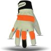 Our gloves feature a sturdy goatskin leather palm with foam padding for added comfort during extended use. The chainsaw cut retardant fabric provides reliable Class Level 1 protection. The spandex fabric back ensures breathability and flexibility, while the goatskin leather knuckle adds extra reinforcement. With a knitted cuff and ergonomic design, these gloves offer a secure, comfortable fit. Reinforced nail tips enhance resistance to wear and tear, and the spandex thumb back allows for greater flexibility. The electro-conductive synthetic leather on the middle finger nail tip ensures easy touchscreen interaction.