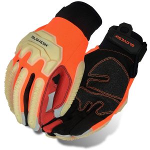 These gloves are purpose-built for the harshest conditions, making them a dependable choice for miners and other demanding work environments. Featuring a Hi Viz Orange TRI-Bumper, they offer robust backhand protection from impacts, lacerations, and hammer blows. The pro synthetic leather palm ensures outstanding dexterity, allowing for precise handling in tough tasks. A reflective layer on the iconic knuckle enhances visibility, boosting safety in low-light settings. Stitched vinyl TPR finger protection provides impact resistance while maintaining freedom of motion. With synthetic leather saddle reinforcement to reduce pressure points, these gloves deliver unparalleled comfort and durability, standing up to the toughest challenges with ease.